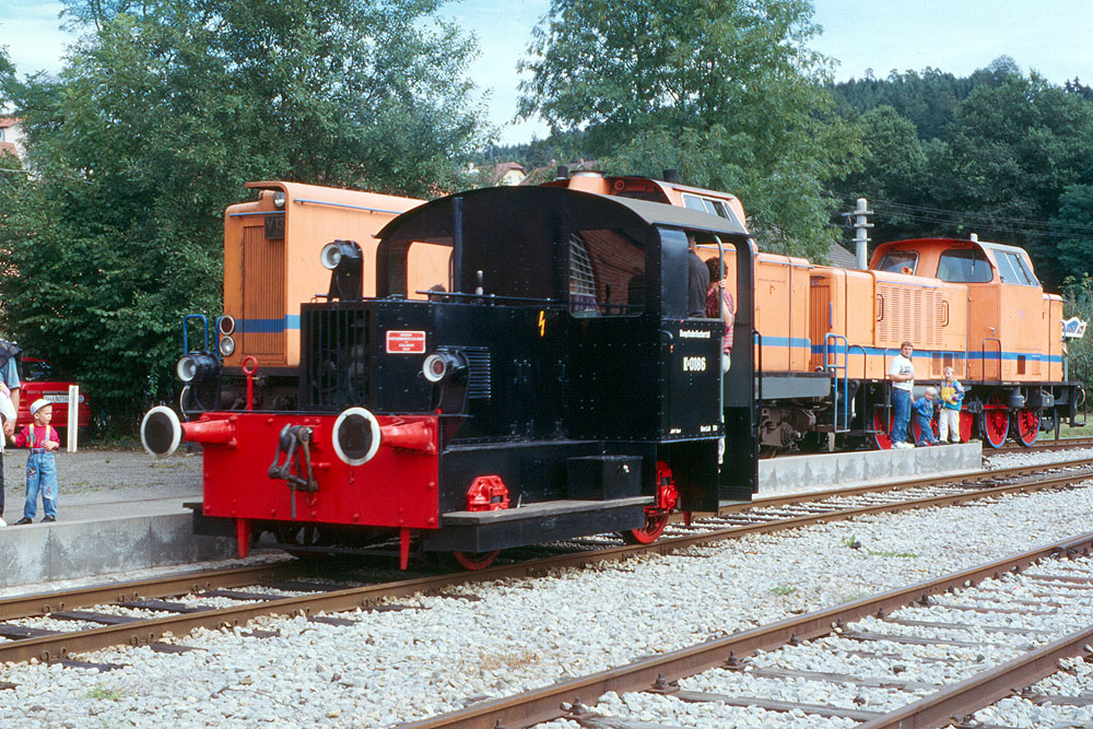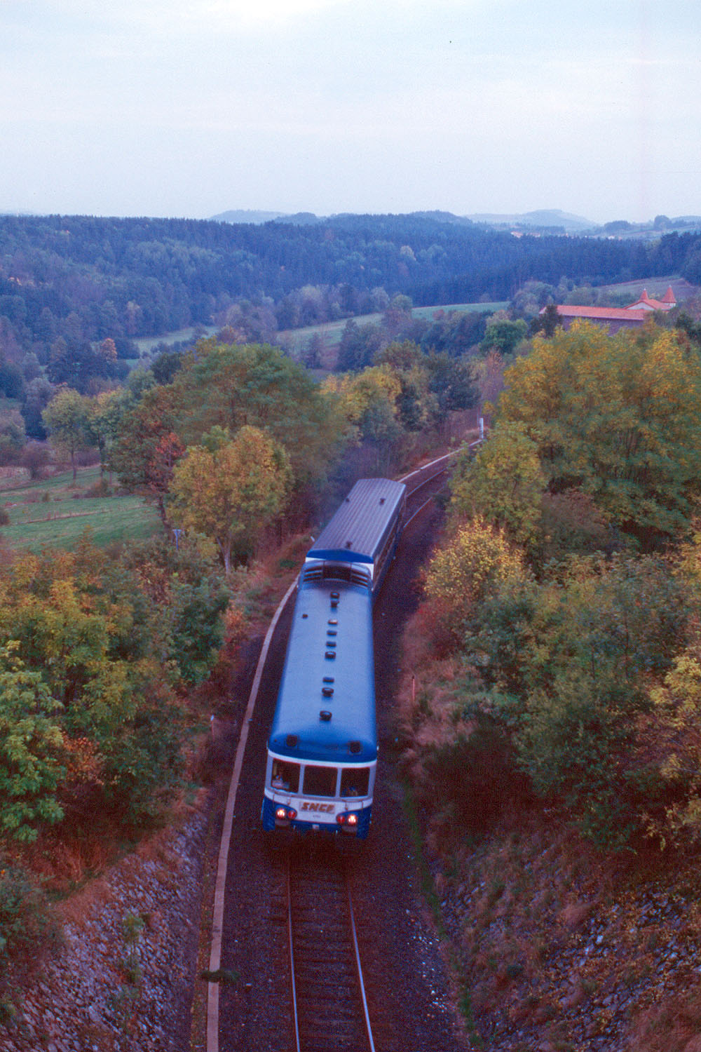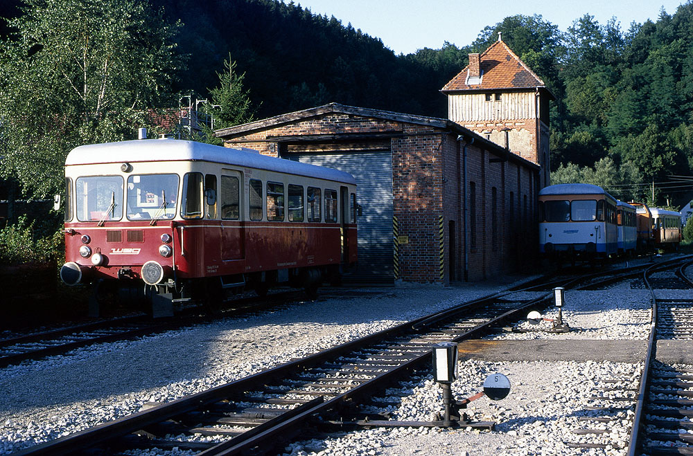Bild 10: Auf der Oberen Kochertalbahn (Gaildorf West- Untergröningen) war im August 1995 WEG T06 im Einsatz, aufgenommen in Schönberg.