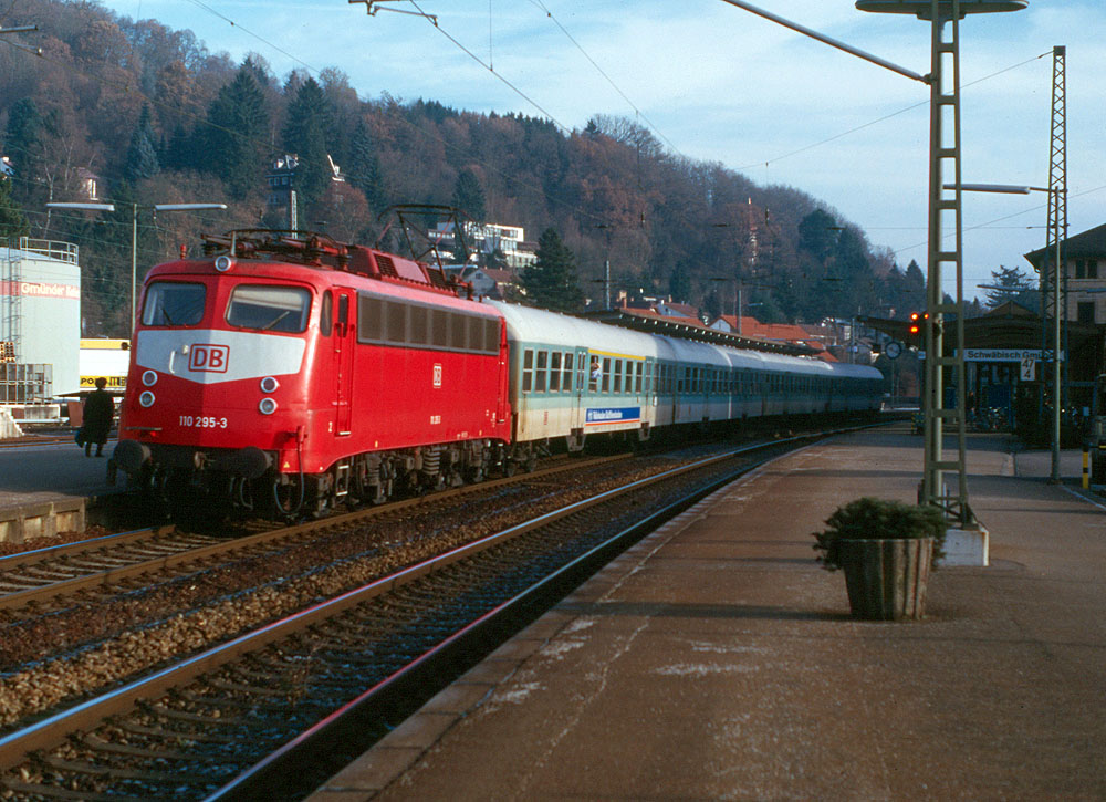 Bild 14 und 15: 110 295 vor RE3454 in Schwäbisch Gmünd.