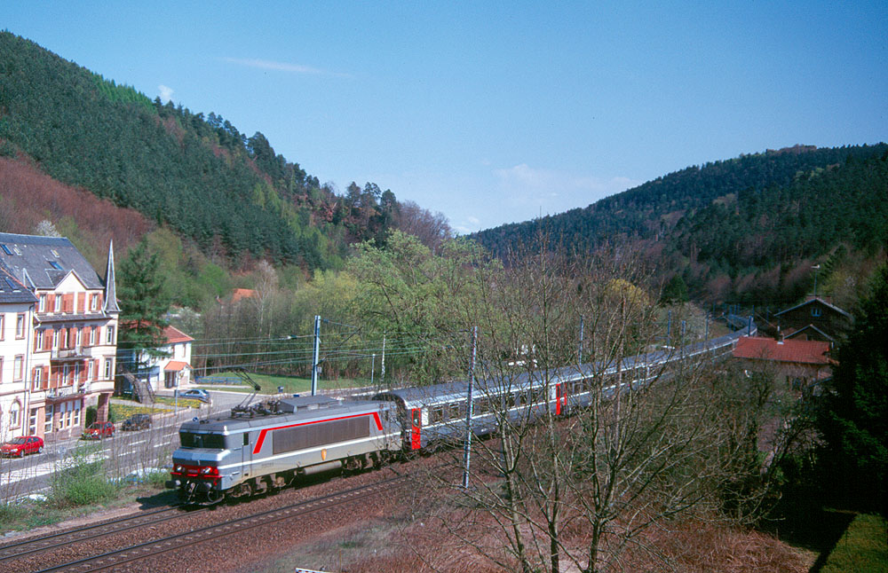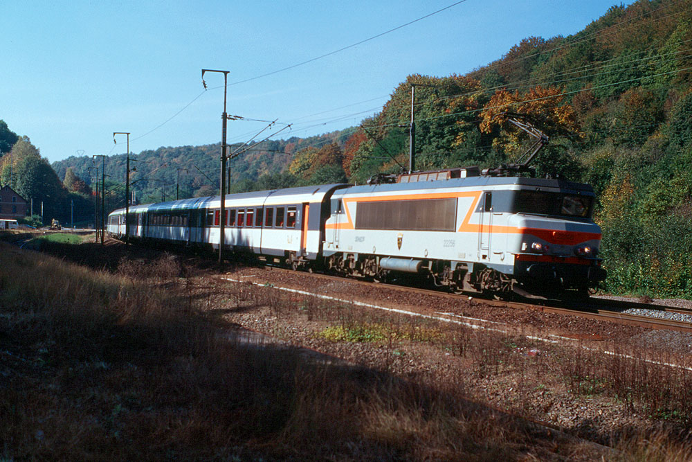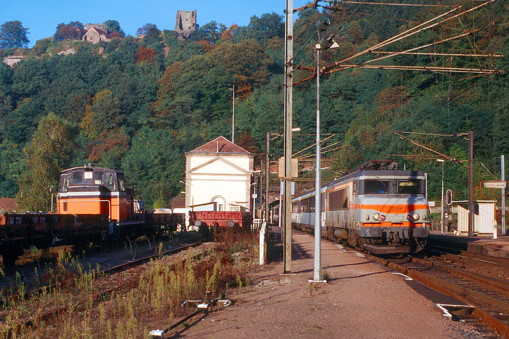 Bild 10: Weiter mit der Hauptstrecke Strasbourg- Metz/Nancy: In Lutzelbourg BB22256 vor E1606 (Strasbourg- Paris).