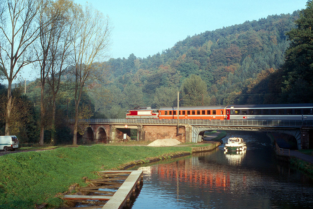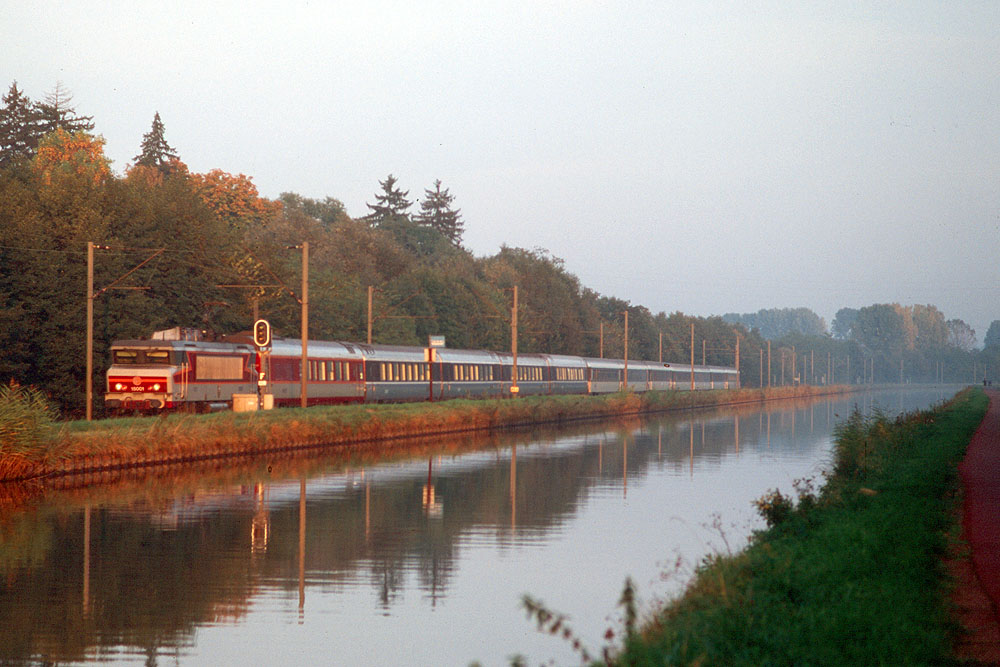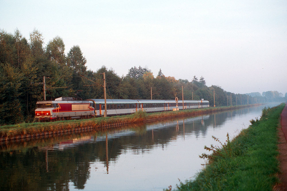 Bild 5: BB15008 vor EC65 Mozart (Paris- Wien). Auf dem Kanal schwimmt eines der zahlreichen Hausboote.