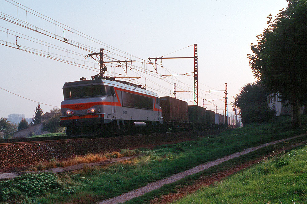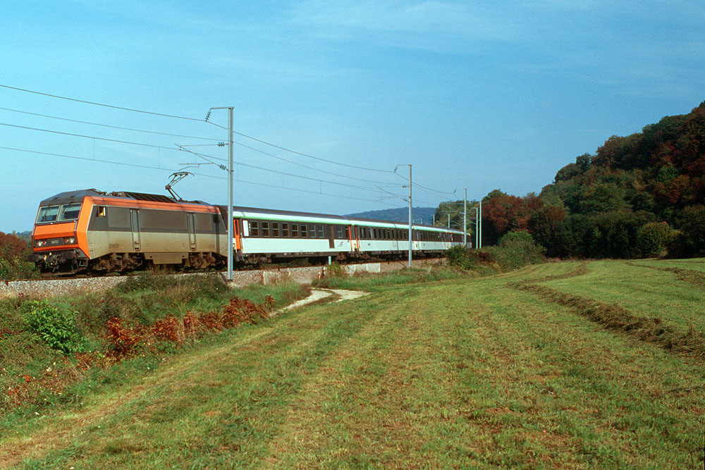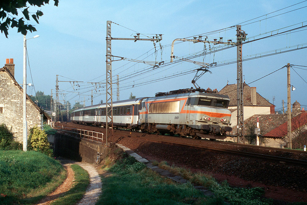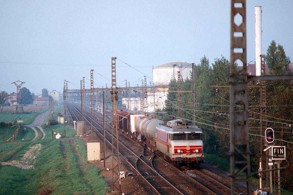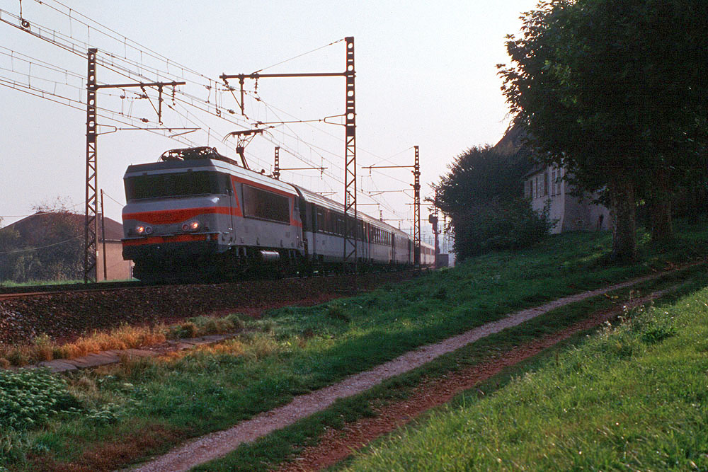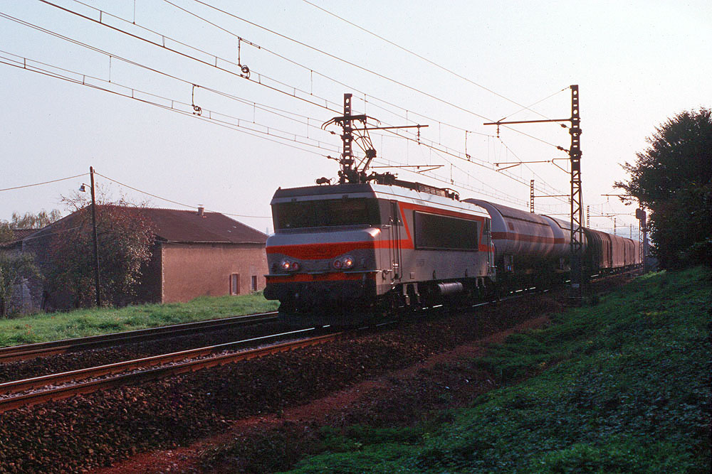 Bild 6: Eigentlich wollten wir auf der Strecke Strasbourg- Lyon die zur Abstellung anstehenden Gasturbinen- Triebwagen fotografieren. Leider war Zug 6672 (Lyon- Strasbourg) nur mit BB25236 bespannt, bei Mouchard.
