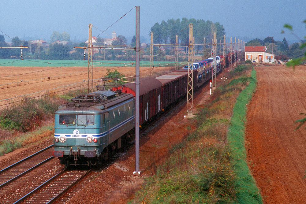 Bild 8: Bei Fleurville, etwas nördlich von Macon CC7105 vor einem Güterzug.