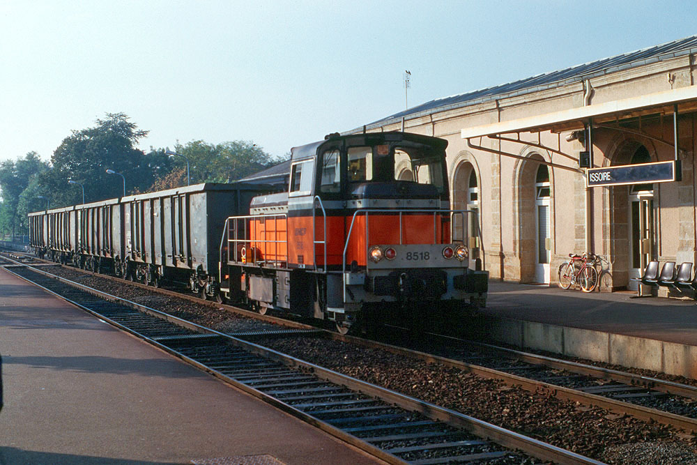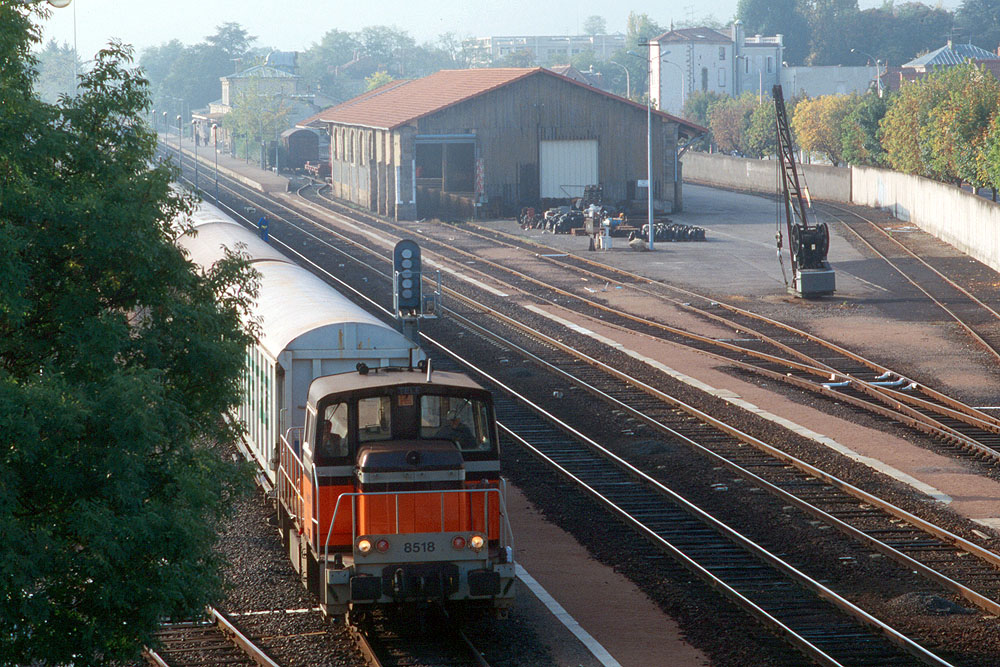 Bild 19 und 20: Rangiertraktor 8518 im Bahnhof von Issoire an der Strecke 543 Clermont Ferrand- Nimes.