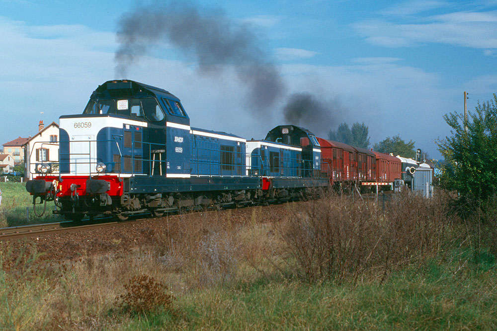 Bild 9: In Fleurville viele Züge: BB22240 mit einem weiteren Güterzug. Für Nordfahrer war das Licht sehr ungünstig.