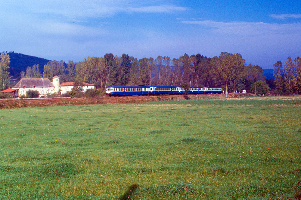 Bild 28: Wieder auf der 543 wurde bei dem kleinen Örtchen Laroche X2730 als 59562 (Nimes Clermont- Ferrand) fotografiert. Triebwagen der Reihe X2700 wurden als RGP (Rame a Grand Parcours) bezeichnet und im Fernverkehr sogar als TEE eingesetzt.
