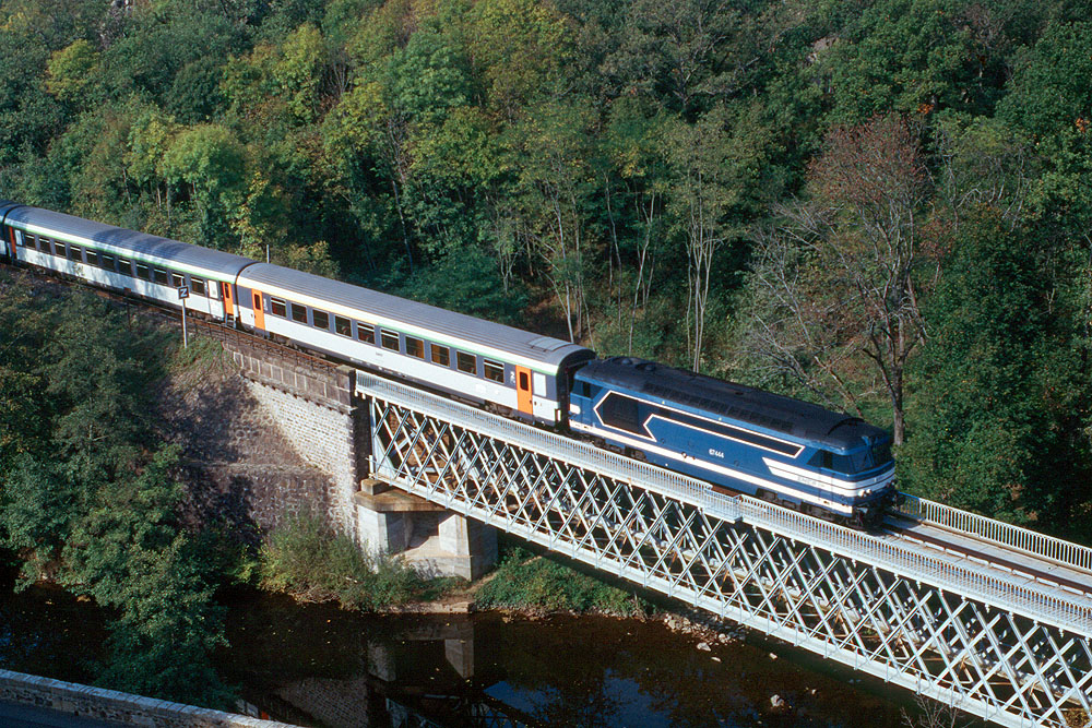 Bild 16 und 17: Auf dem nur wenige Meter entfernten Viaduc de Belon T2006 als 6880/1 (Lyon- Bordeaux). Der Zug fährt offensichtlich Richtung Montlucon.