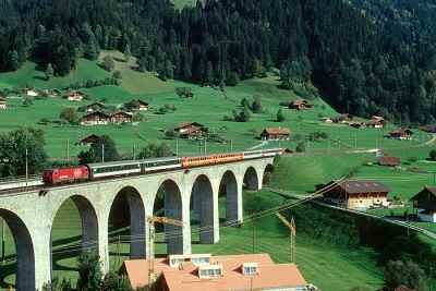 über das berühmte Kanderviadukt bei Frutingen schleppt. (22.9.1993)
