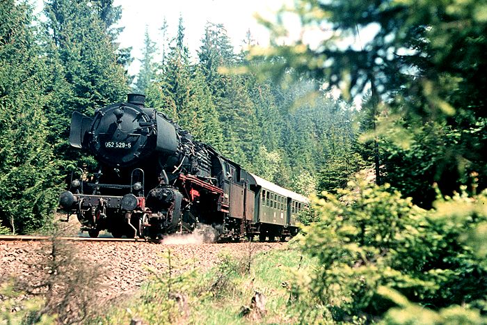 (KBS 204a) Vor Altenau rollt die Lehrter 052529 durch den waldigen
