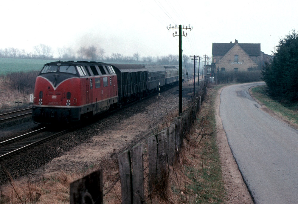 037 im Bf Plön darf nicht fehlen, aufgenommen am 21.3.83. 220 037 bespannt