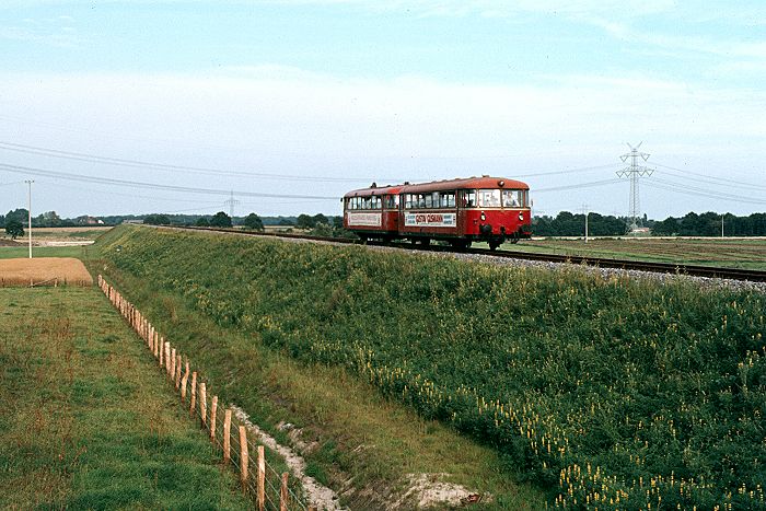 Bentheimer Eisenbahn. Er verläßt Ulzburg- Bahnhof im Hintergrund- in Richtung